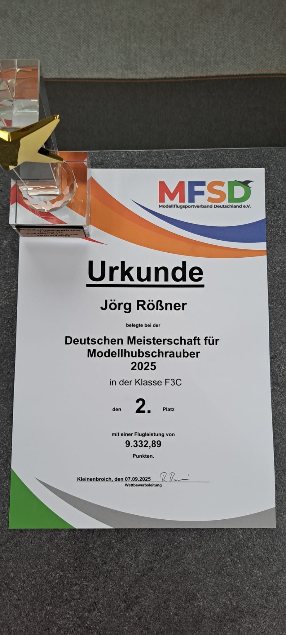 Herzlichen Glückwunsch, Jörg Rössner zum Vize-Titel der Deutsche Meisterschaft 2025 im F3C Wettbewerb mit der Dolphin GENESIS-HCB-Mechanik!